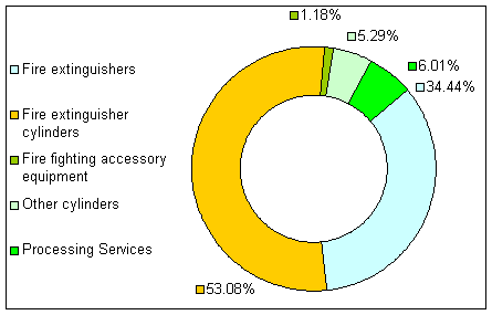 Apart from fire fighting equipment, the Company also manufactures and sells pressure cylinders which are used by its customers for non-fire fighting equipment purposes. The Company also provides processing services which include phosphoric acid cleaning for and manufacture of pressure cylinders. Sales of other cylinders and provision of processing services amounted to approximately RMB 6.08 million and RMB 5.47 million for each of the two years ended 31 December 2003 respectively, representing approximately 13.41 and 11.30% of the Company's turnover during the same period.