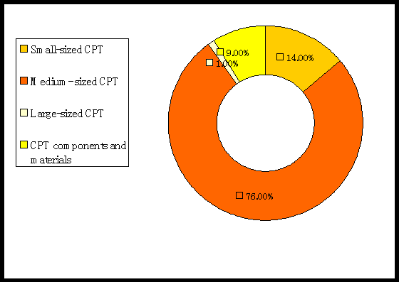 The Group is the largest CRT manufacturer in China and one of the world's major CPT and CPT (color picture tube) component manufacturer. The CPT is the core component of a CRT television set, accounting for about 50% of the aggregate cost of all of the components of a CRT television set. The Group manufactures small, medium and large sized CPTs 14" to 29" in size and a majority of CPT components, including glass bulbs, electron guns, deflection yokes shadow masks and their frames as well as phosphor and frit.