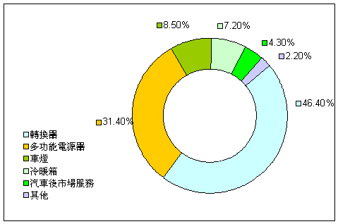 ¶°¹Î¥Dn±q¨Æ»s³y¤Î¾P°â¨Ñ¥ð¶¢¤Î¦w¥þ¥Î³~ªº¹q¤l¤Î¹q·½¬ÛÃö¨T¨®¹s³¡¥ó¤Î°t¥ó¡C¶°¹Î¦¨¥\¶}µo¤F¤Ãþ¨T¨®¹s³¡¥ó¤Î°t¥ó¡A¥]¬AÂà´«¾¹¡F¦h¥\¯à¹q·½¾¹¡F¨®¿O(¯S§O¬O°ª±j«×®ðÅé©ñ¹q¿O(HID¿O))¡F§N·x½c¡F¤Î¨ä¥L°t¥ó(¨Ò¦p¥R¹q¾¹¤ÎÅܬy¾¹)¡C¶°¹Î«È¤á¥Dn¥]¬A¥Dn¤j«¬¶W¯Å¥«³õ¡B¹q¾¹©Î¹q¤l²£«~³sÂꩱ¤Î¦Ê³f¤½¥q¡C°£¥H«È¤áªº«~µP»s³y¨T¨®¹s³¡¥ó¤Î°t¥ó¥~¡A¶°¹Î¥ç¥H¡uNAF¡v«~µP¥Í²£¤Î³z¹L¨ä¥»¨ªº¤À¾Pºôµ¸¾P°â¨ä¨T¨®²£«~¡A¦Ó³oÓºôµ¸¥Ñ¦b¤¤°ê¼Æ¥Ø¥¿¤£Ä~¼W¥[ªº¨T¨®«á¥«³õªA°È³s¾P©±²Õ¦¨¡CºI¦Ü¤G¹s¹s¥|¦~¤Q¤ë¤T¤Q¤@¤é¤î¤QÓ¤ë¡A´N¶°áÞªº²£«~¾P°â¦Ó¨¥¡A¬ù92.5%¨Ó¦Û«È¤á«~µP¦Ó»s³yªº²£«~¡B¾l¤U¬ù7.35%«h¨Ó¦Û¶°¹Î¥»¨«~µP²£«~ªº¾P°â¡C